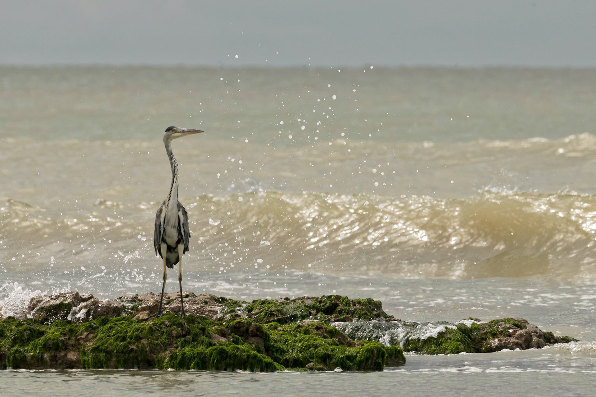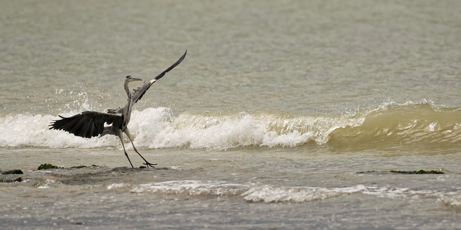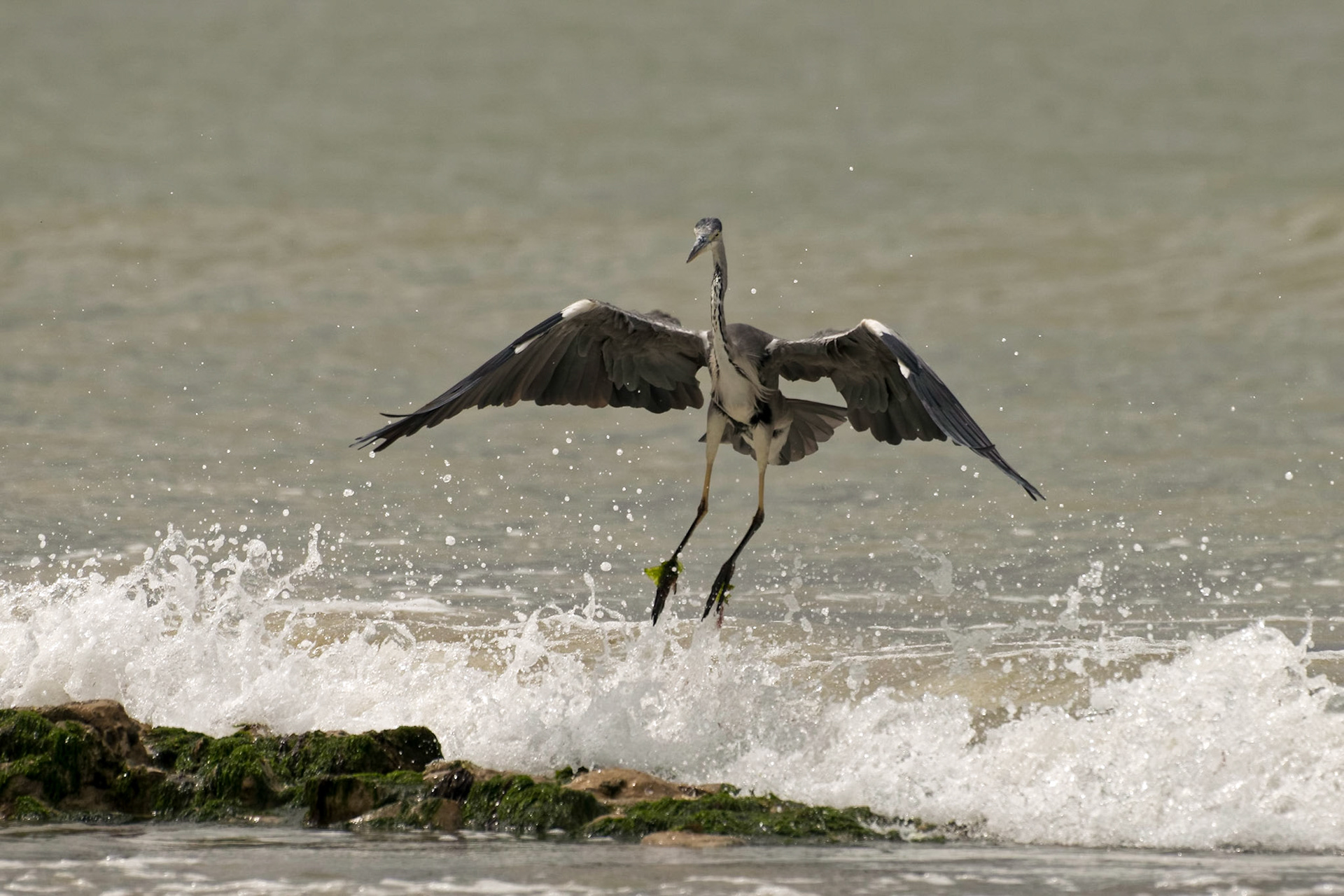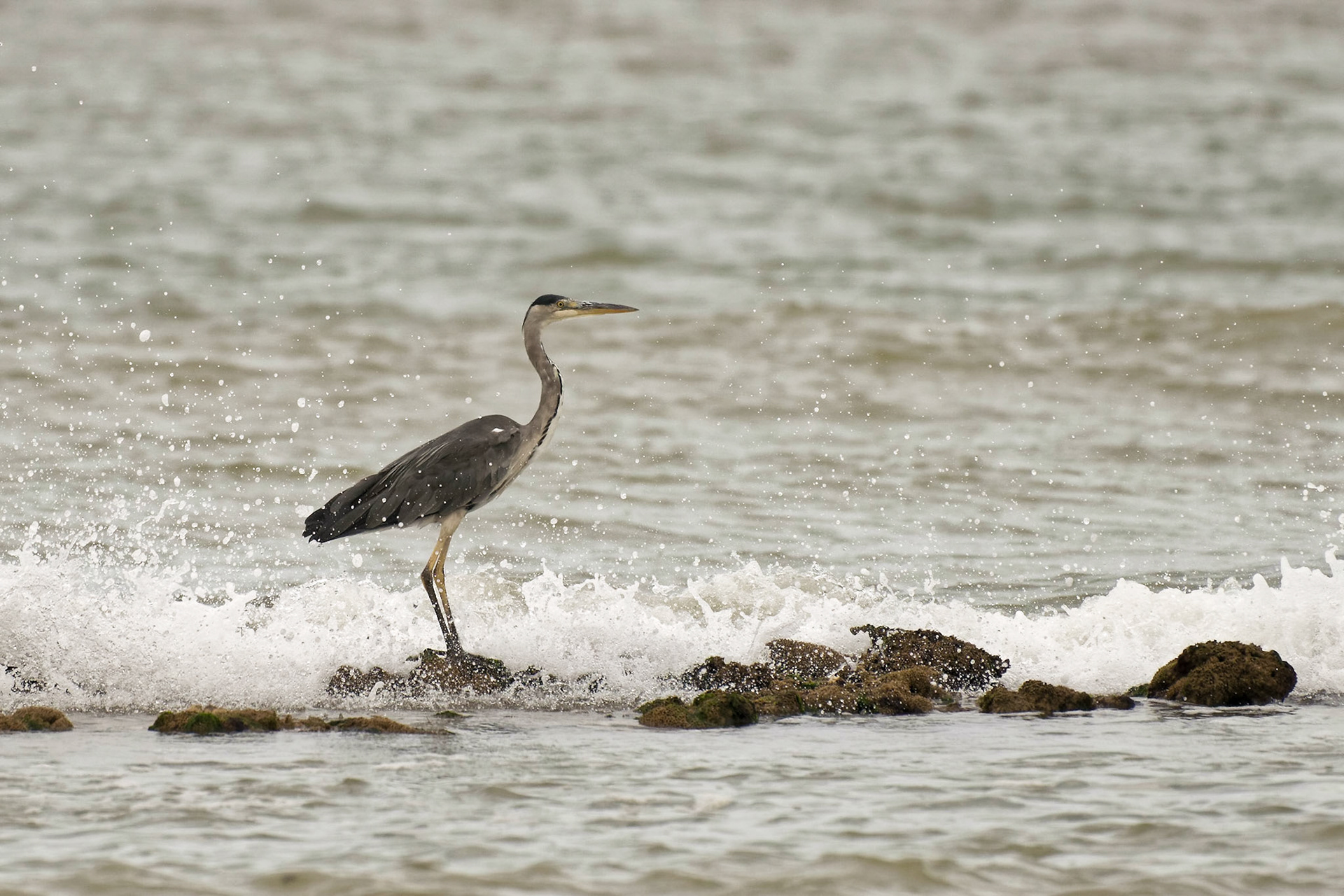 Ce matin du 5 août 2017 était le dernier jour des vacances, j'avais opté pour une petite ballade sur la plage alors que la marée commençait à remonter depuis près d'une heure... le temps était gris et je me disais que je risquais d'avoir sorti le 200-500mm pour pas grand chose... Après avoir déloger un Goéland plutôt mécontent (1ère photo...) un héron cendré est soudain apparu et a commencer de jouer dans les vagues en enchaînant envol et pose pour passer de rocher en rocher, un spectacle exceptionnel qui m'a fait arpenter la plage pendant un bon moment Avec son « long cou emmanché d’un long bec », le héron cendré est le plus grand oiseau des marais (un mètre de haut pour 1,80 m d’envergure) après le cygne tuberculé. Il fait son nid dans de grands arbres des forêts voisines et s’alimente dans la Réserve naturelle et les marécages de l'ile. Il n'est pas si fréquent de le rencontrer sur la plage. Le héron se nourrit de poissons, mais aussi de petits rongeurs. Ces image ont été prises sur la plage du petit sergent au Bois plage en Ré durant l'été 2017. Matériel utilisé : Nikon D800 + objectif AF-S 200-500mm VR