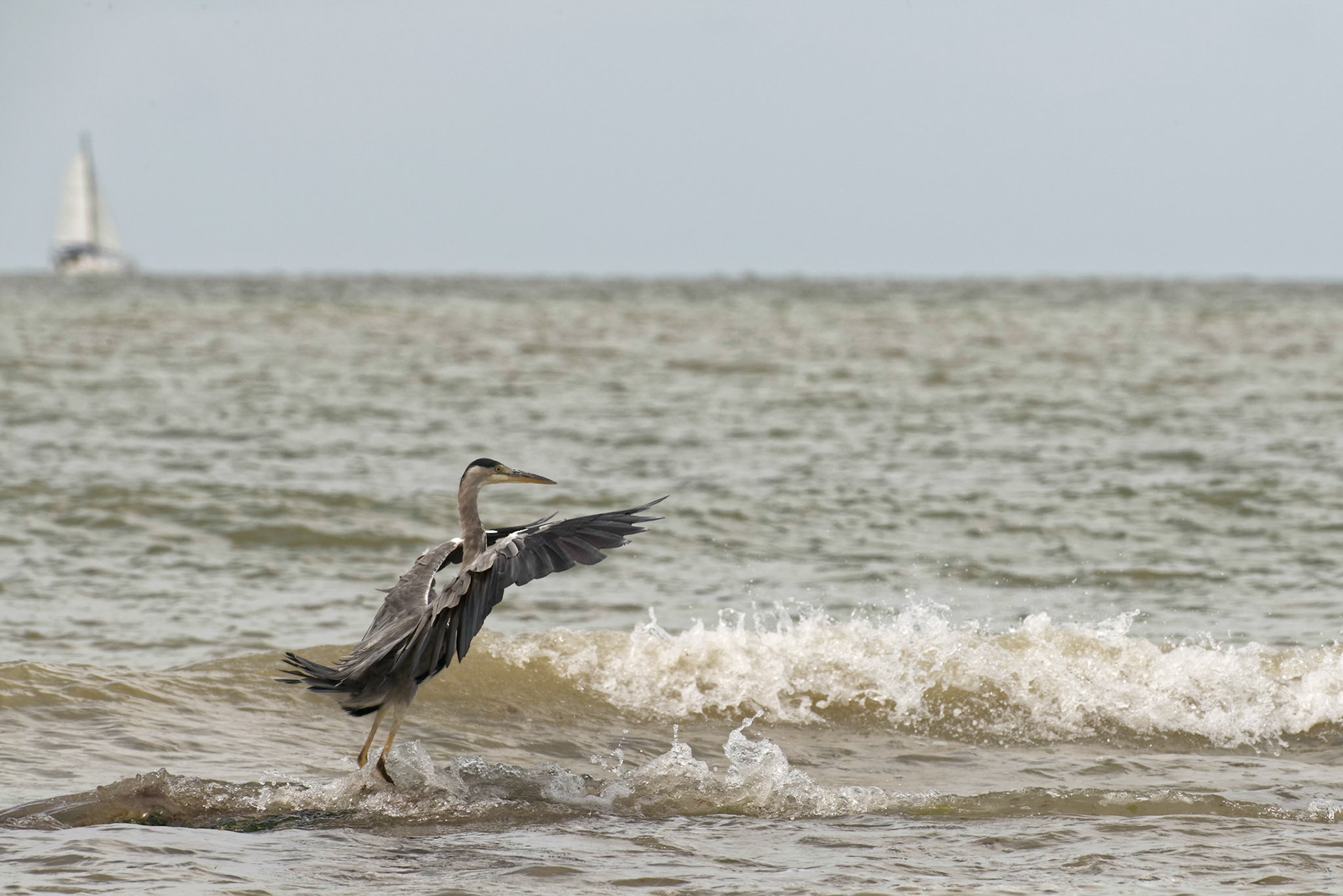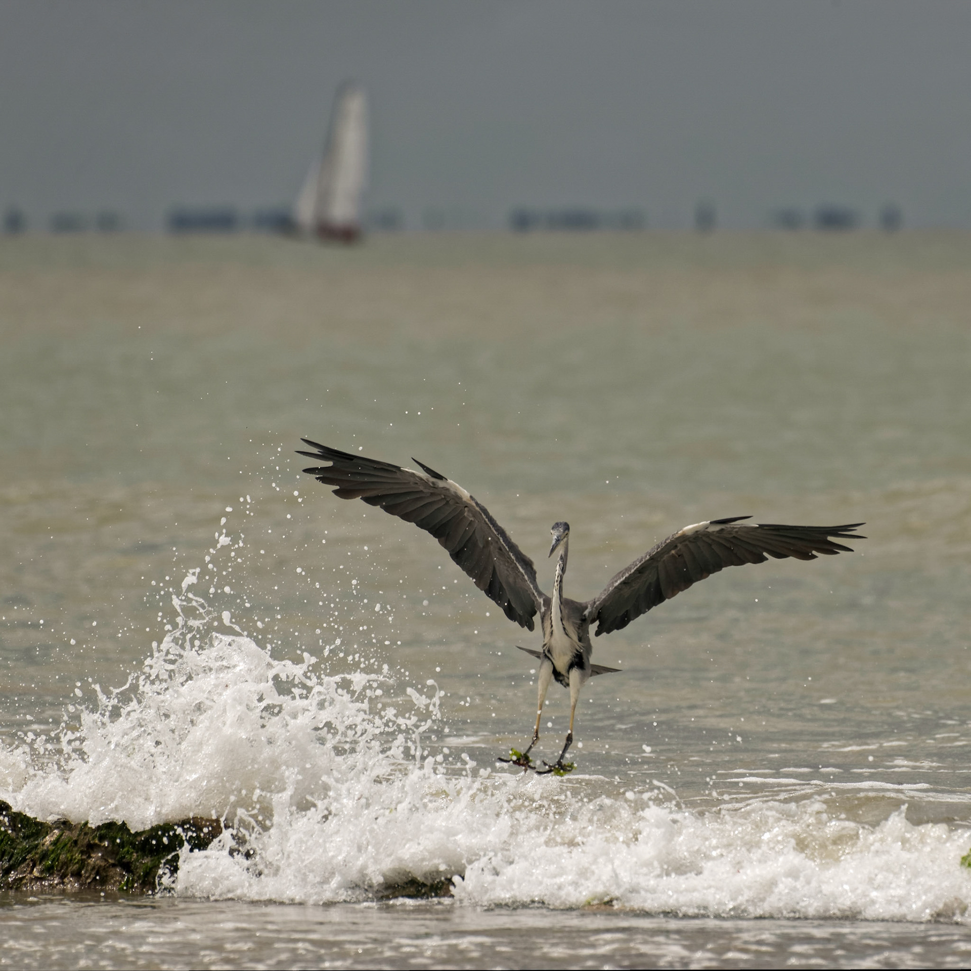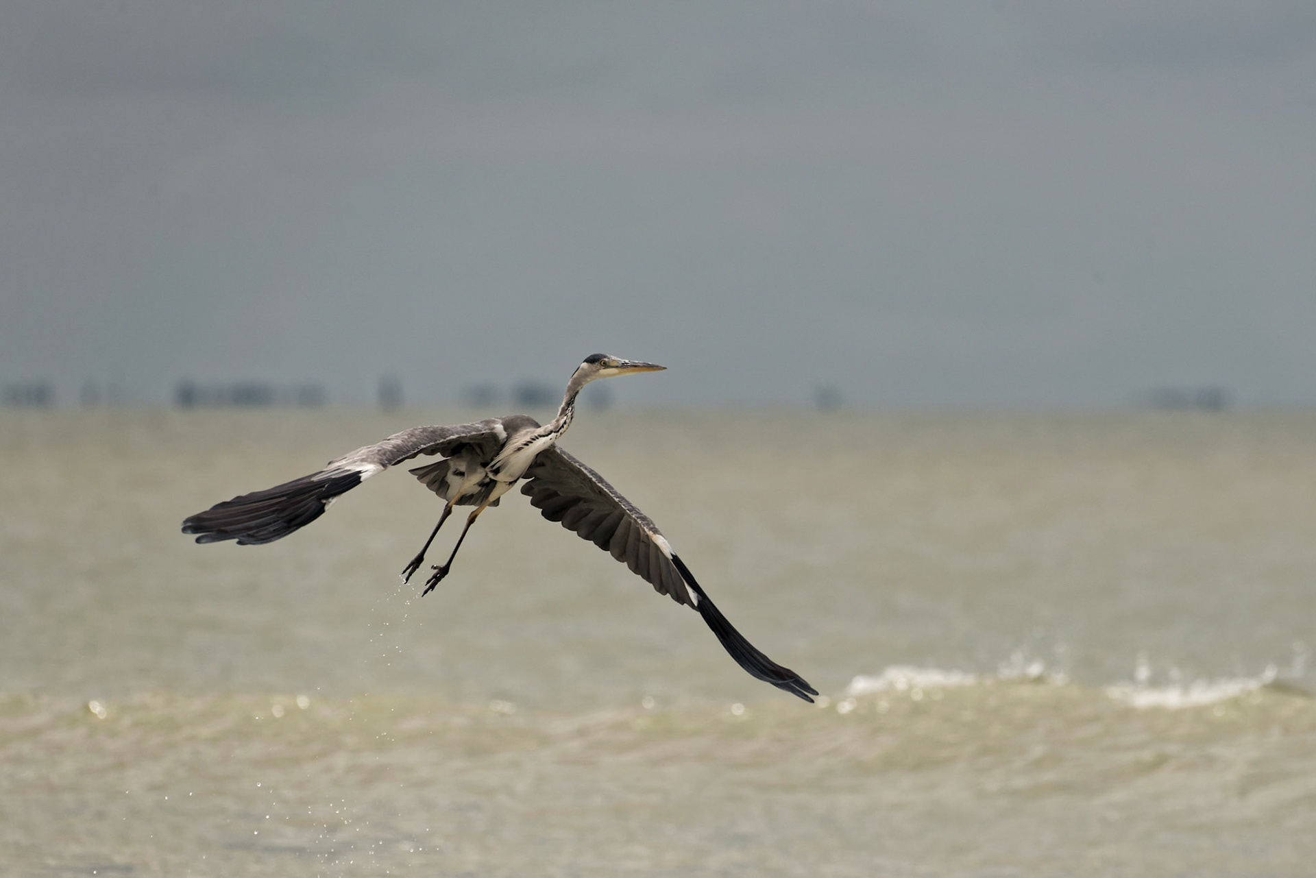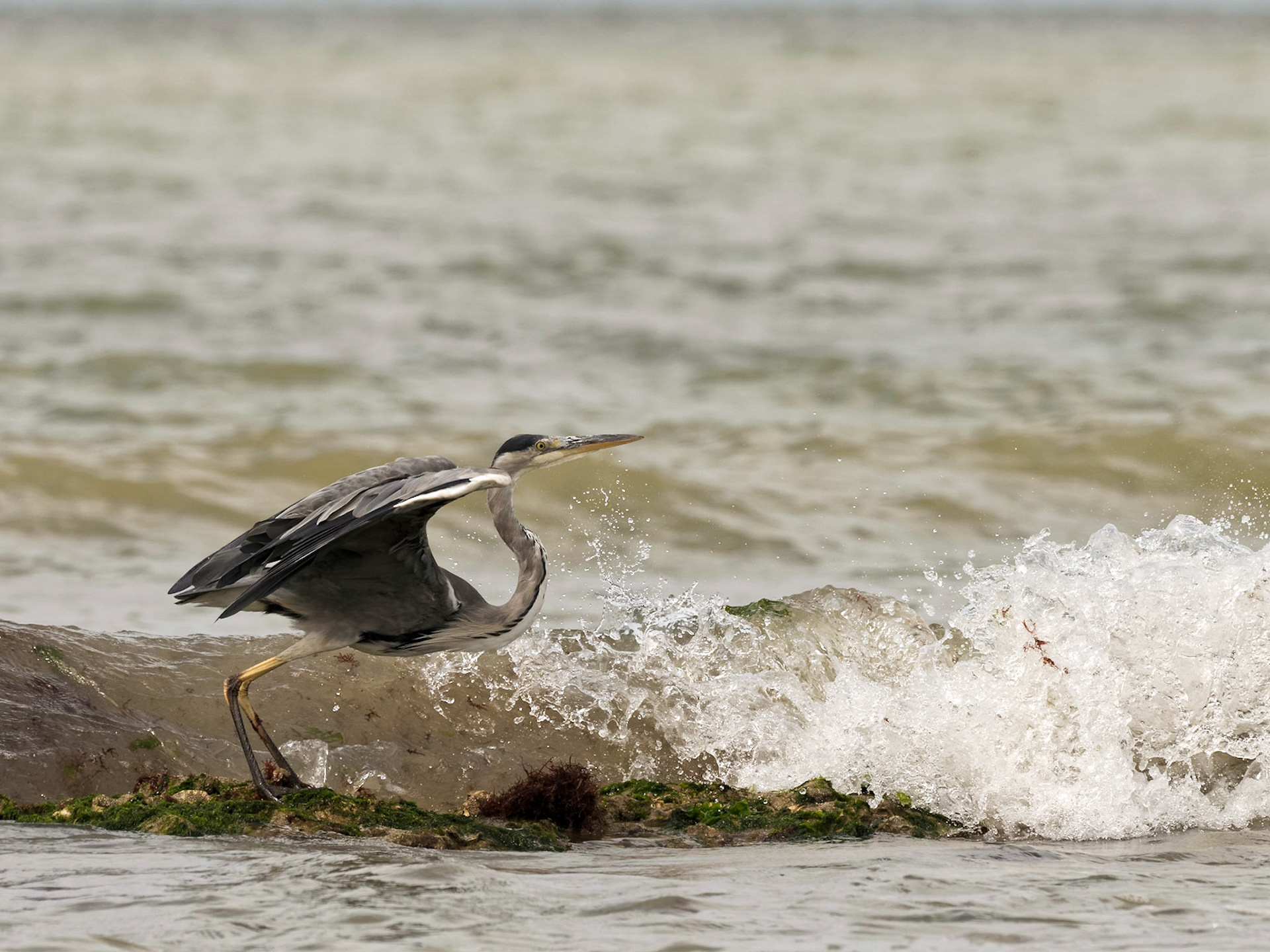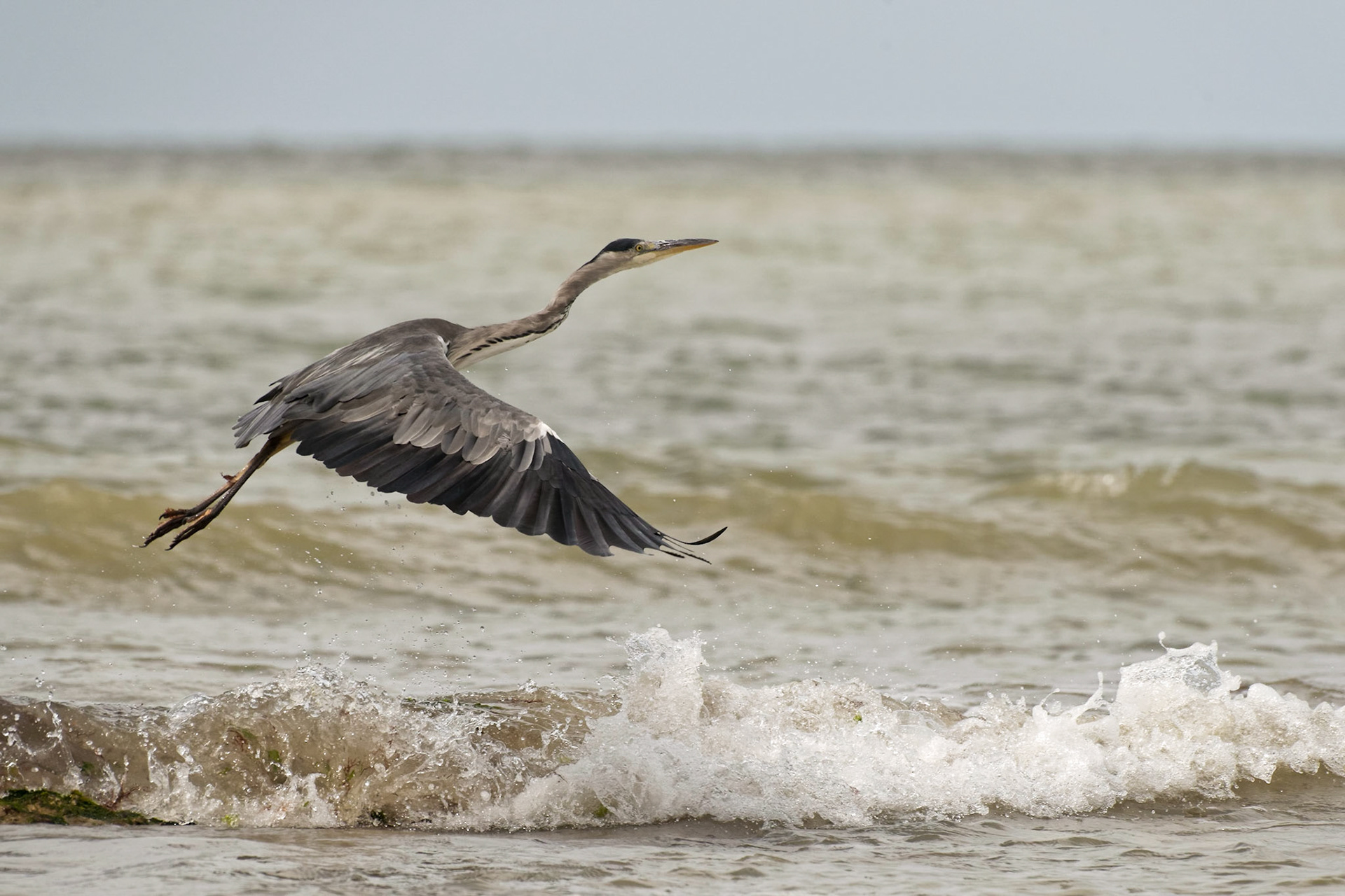 Ce matin du 5 août 2017 était le dernier jour des vacances, j'avais opté pour une petite ballade sur la plage alors que la marée commençait à remonter depuis près d'une heure... le temps était gris et je me disais que je risquais d'avoir sorti le 200-500mm pour pas grand chose... Après avoir déloger un Goéland plutôt mécontent (1ère photo...) un héron cendré est soudain apparu et a commencer de jouer dans les vagues en enchaînant envol et pose pour passer de rocher en rocher, un spectacle exceptionnel qui m'a fait arpenter la plage pendant un bon moment Avec son « long cou emmanché d’un long bec », le héron cendré est le plus grand oiseau des marais (un mètre de haut pour 1,80 m d’envergure) après le cygne tuberculé. Il fait son nid dans de grands arbres des forêts voisines et s’alimente dans la Réserve naturelle et les marécages de l'ile. Il n'est pas si fréquent de le rencontrer sur la plage. Le héron se nourrit de poissons, mais aussi de petits rongeurs. Ces image ont été prises sur la plage du petit sergent au Bois plage en Ré durant l'été 2017. Matériel utilisé : Nikon D800 + objectif AF-S 200-500mm VR